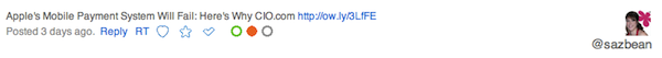 While the sentiment may be negative towards Apple, it’s not negative towards the search, “sazbean”, which is a given since sazbean is the one who posted it.