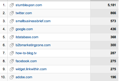 When I look at the sites that are sending traffic to my blog, StumbleUpon is by far the highest. While many people may come to the site randomly and then leave (so you’ll have a low average time on site), if the content is good, they’re likely to share it with their own stumblers or look at other content (which you’ll see in pages per visit).