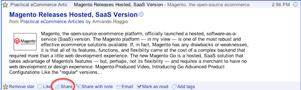 Lastly, I click Share at the bottom of the article in Reader to share it out there as well: