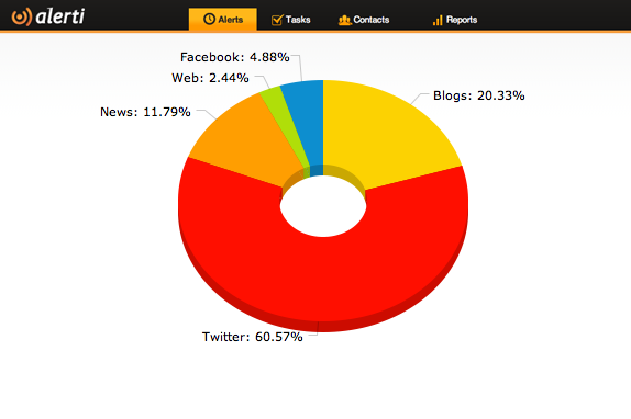 Using the social media monitoring tool Alerti, you can see that most of the conversation about Lazerow’s video has been over Twitter and blogs. Alerti is a great tool for bloggers since it lets them see what people are saying on certain topics through different social media platforms