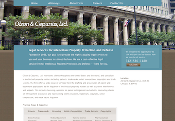 One of our website redesign projects was Olson & Cepuritis, Ltd., an intellectual property protection and defense law firm in Chicago, IL. We redesigned their site to more effectively convey their marketing message and present a more professional image to potential clients. Their site, olsonip.com, is hosted on Adobe’s Business Catalyst content management system (CMS), which allows Olson to make their own changes to the site.